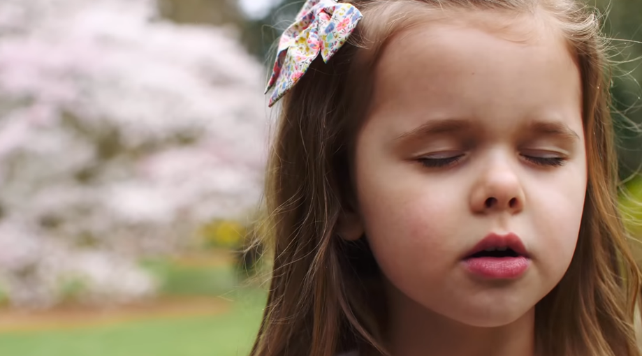 The video shared below is one in which both dad and daughter are singing together. The video starts in a beautiful spring setting — greenery and pretty pink flowers. Then, Claire begins to sing.