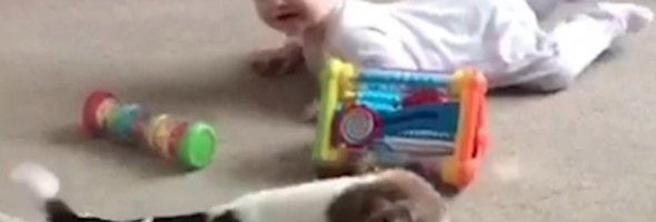 Some first-time mothers and fathers fear to put their babies around their pets for the very first time. One often doesn’t know what to expect either of the two to do when they meet. Common concerns that arise are whether the baby will pull the cat’s tail and get clawed or if the baby will get trampled on by the family dog. It’s all apart of protecting young children from potential harm; that’s a parent’s job. After all, we have all heard horror stories about babies needing stitches because of an accident with an animal.
