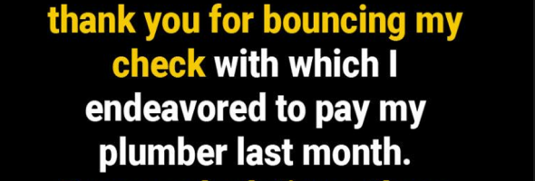 “Dear Sir: I am writing to thank you for bouncing my check with which I endeavored to pay my plumber last month. By my calculations, 3 nanoseconds must have elapsed between his presenting the check and the arrival in my account of the funds needed to honor it..
