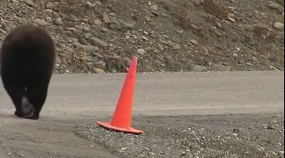 Many online commentators have written that bears can be a role model for many people. On the way, the bear approached the returning cone and lifted it.