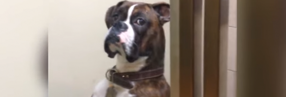 We don’t know for sure how long he had to stay at the veterinarian’s clinic, but we do know his expressions are enough to make one’s day. No matter which angle he was being filmed from, he would give the same looks to his owner. At first, it looked like the typical, curious, quizzical looks dogs often shoot when people exhibit behavior they can’t seem to understand. From curious to confused, to straight-faced and suspicious, the dog gave one entertaining facial expression after another.