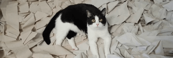 After giving Pusic a few hours in the toilet paper-filled room, his parents started cleaning and planning to save it for Pusic’s enjoyment. “We try not to waste resources,” he said. “The toilet paper will be useful for future games and for new cat toys.”