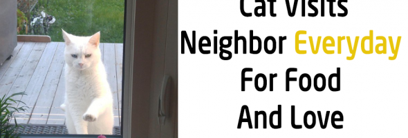 Mama, the cat, has been visiting this family next door every day for treats and pets. The neighbor can’t spend a day without hearing the cat’s knock on the door for over a year. Ever since this kitty found her friendly neighbors, she has been coming every day, waiting