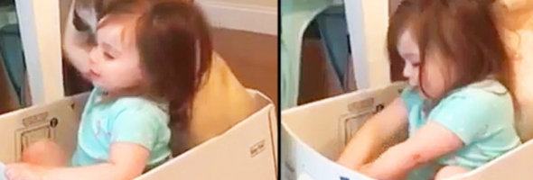 This unlikely friendship started when Brody the golden retriever’s family found a nest of duck eggs. Now Brody and the unnamed female duck do everything together! The family ordered an incubator and 28 days later, four chicks hatched, but only one survived. On the advice of local wildlife experts,
