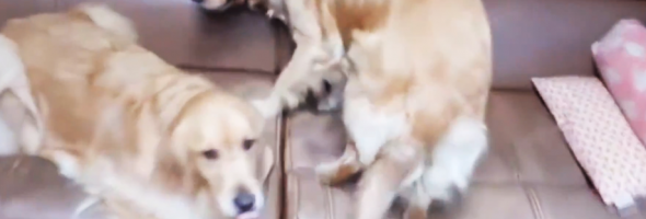 4-year-old Mongmoo the Golden Retriever knows that her sister is sick in bed, so she decides to bring her a treat. What a touching sight to see!