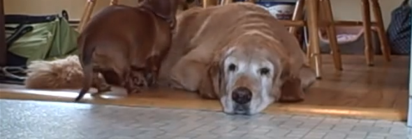 Okay, this video may be short and sweet, but it officially goes down as one of the most adorable videos of all time. I squealed with delight watching the bond unfold between this dachshund and golden retriever, two dogs who couldn’t be any more different in the physical sense. Mom made sure to keep the cameras rolling as the two dogs enjoy a lazy day of relaxation inside their cozy home, and I’m grateful to her for letting us share in this heartwarming moment.