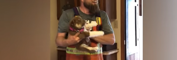 The video came from Battleford, Canada, and the father’s emotional reaction to the new puppy touched the hearts of many. Especially for those who know the sad background.
