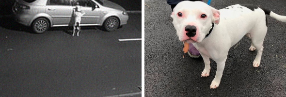 “The veterinary staff have nicknamed the dog Snoop, and he is in good condition, thought to be two years old. He is a white Staffie with black marking and is such a friendly, lovely boy. He’s currently being cared for at a private boarding kennel where he will get all the care he needs whilst I investigate further.”