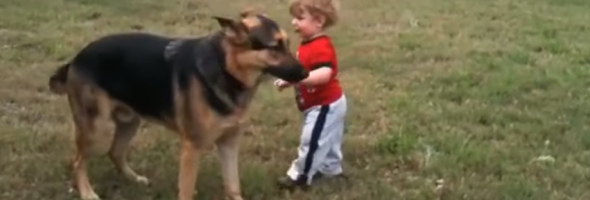 It’s wonderful moments like these that make a father proud of his babies. In this video, Daniel Colvin’s 2-year-old German Shepherd Freyja and his 5-month-old son share a tender moment together. The dog brings one of her favorite green toys over to the baby and the infant starts to giggle. That’s when Freyja starts to play with the boy, picking up her toy trying to place it in the baby’s hands. Daddy says that the two are best friends already!