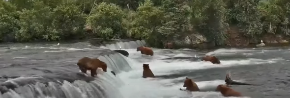 See an unusual performance in Brooks Falls, Alaska, where you can see live bears catching salmon. Will the scenes impress you?