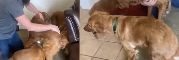 The puppy and his mother were reunited after his family adopted him when he retired from breeding. Kenny Keller, a 30-year-old human resources officer from Wyoming, captured the moment he was reunited with his mother Zoe after his family decided to adopt a four-month-old puppy.