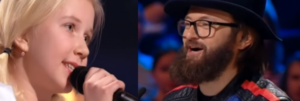 The judges exchange looks of pure shock as they take in the unusual performance. One judge raises her eyebrows as the little girl’s lilting voice sings a short run that almost sounds like a yodel.