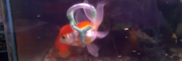 Although there isn’t video footage of this particular goldfish, another fish by the name of Einstein received a similar device to help him swim when he lost his fin to swim bladder disease. See the heartwarming footage of him swimming in the video below.