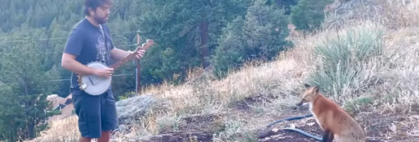 While the man was playing the banjo, a fox came up to him from the forest. The animals listened attentively to the game and surprised many.
