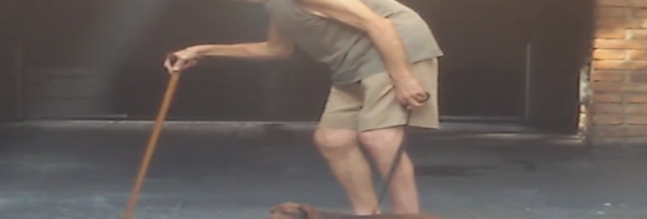 These days, a wonderful video came online, in which grandpa and his puppy steal all the attention. Since the grandpa was in years, he moved very slowly along the pavement by the road with the help of a stick. The dog remained close to him all the time and followed him slowly.