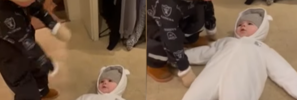 Shortly before the first snowfall, one of my brothers is happy. Ashton Stevens, a 31-year-old health consultant, and her husband overheard Sloane, 2, comforting her 8-month-old Isla as she prepared to spend a day in the snow at her South Missouri home. Isla had just begun to crawl and was unable to move because of her winter clothes. Luckily, her brother was there and assured him that he would soon have a good time in the snow.
