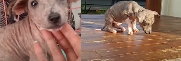 Aaron, the savior, met this little dog that had almost no hair, but had such a big belly. He looked at her with his big brown eyes, as if to say, “Help me.” The man realized that she had just been abandoned here, and now he believed her. He didn’t want to betray.