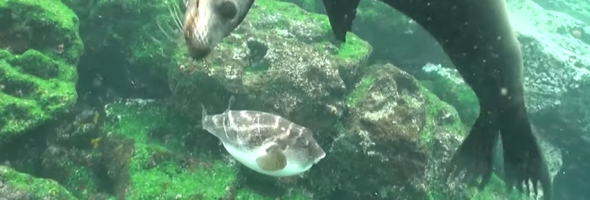 The camera caught a sea lion playing with a fish. Mark Coger, a 37-year-old videographer, was photographing a sea lion while diving near Hispaniola Island in the Galapagos Islands when a sea lion suddenly approached them. The sea lion started playing with the sea lioness and the fish seemed