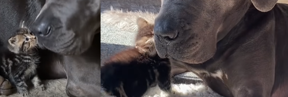 The woman thought that her adoptive kitten weighing half a pound was missing and found herself sleeping under her 130-pound dog. absolutely adorable cat,sonic and norm is the most beautiful relationship ever,they both are absolutely beautiful creatures and deserve love and happiness. These relationships are always so heartwarming. They