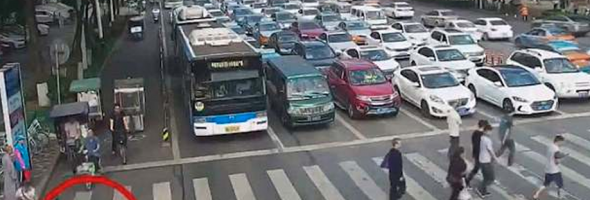 The heartwarming CCTV footage, filmed in south-west China, shows the man attempting to cross the road using two sticks, while some motorists continue to whizz past.