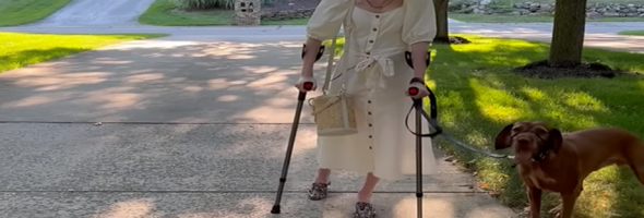 Sienna Ditri posted an amazing video online of Piper walking on crutches in front of her puppy for the first time. The dog could barely hide his excitement when he saw her, and his reaction won the hearts of many netizens.