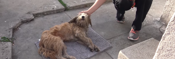 A family in Los Angeles was pretty shocked when they spotted a stray dog lying lifeless on a doormat in their own family yard. Luckily, the lady had some knowledge of Hope For Paws, so she called them over to help the sick animal. Eldad Hagar and Loreta Frankonyte showed up right on time!
