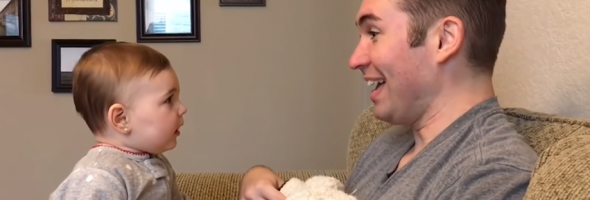 We can first trace her reaction to playing with her father when he had a long beard, and then we can trace the scene in which her father shaved his beard. The little girl’s reaction to her “new” father is sheer laughter.
