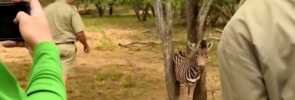 During the safari spotted a baby zebra who between two trees. They saw the baby released and reunited with his parents.