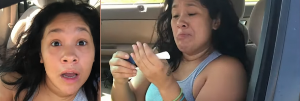 This sister shows how happy she is to be an aunt by giving her a positive test result.