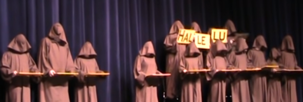 A group of students at the South Kitsap High School in Washington state had an interesting idea for a concert. They’d perform the Hallelujah chorus from Handel’s Messiah but as monks who’ve taken a vow of silence! How do they square this circle? You’ll have to find out by watching the video, which we’ve posted below.