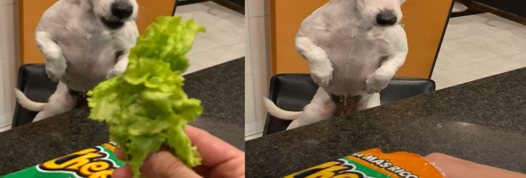 In Argentina, where they live, the owner noted the reaction of the dog. Instead of chips, there were vegetables in the bag, and the dog was not at all satisfied with what he saw.