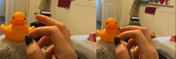 The owner of the bird played with a rubber duck, but soon the animal showed jealousy. The bird landed on his arm and then, in anger, flung the rubber duck to the ground.